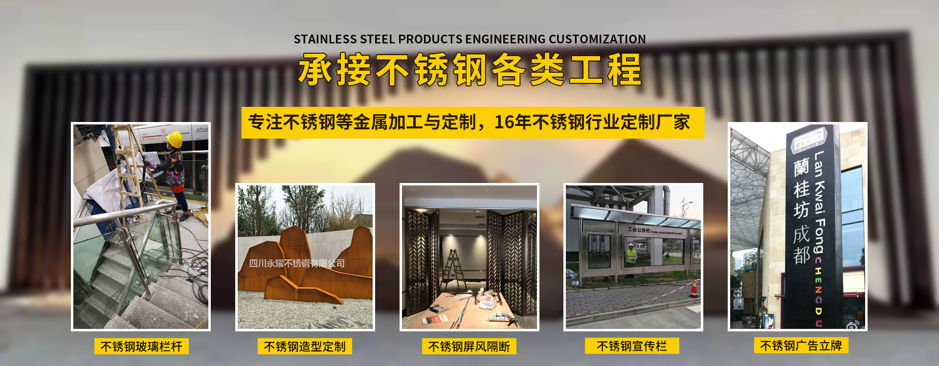 四川永耀不銹鋼有限公司是一家集開(kāi)發(fā)、設(shè)計(jì)、加工、制作、安裝、并承接各種不銹鋼工程為一體的綜合性企業(yè)。多年來(lái)一直在專(zhuān)注于不銹鋼等金屬的加工與研發(fā)。在客戶(hù)群體中贏得了良好的聲譽(yù),以專(zhuān)業(yè)專(zhuān)注的精神,致辭力于打造良好的產(chǎn)品和企業(yè)形象,對(duì)每一產(chǎn)品傾注全力,力爭(zhēng)每個(gè)細(xì)節(jié)精細(xì),確保產(chǎn)品具有優(yōu)越的性能,優(yōu)美的外觀及優(yōu)良的品質(zhì),使公司產(chǎn)品深受廣大用戶(hù)的親睞。